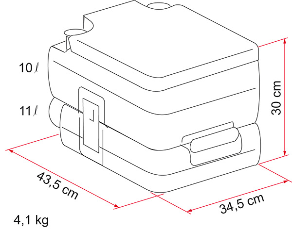 Compact draagbare toilet, past in kleine ruimtes zoals de disselbak of de bergruimte onder een bank. Ideaal voor de minivan.