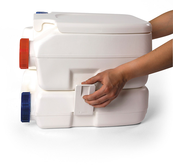 Het stevige Bi-Pot toilet is geheel autonoom, met schoonwatertoevoer, hygiënisch en geurvrij.