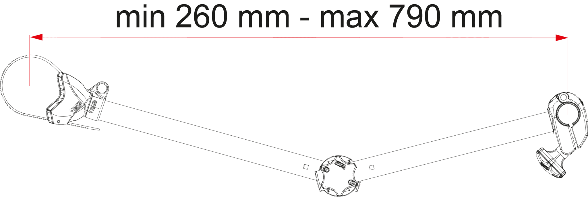 - Afstand tussen de kernen van de buis en fiets frame min. 260 mm en max. 790 mm