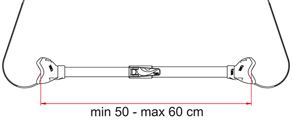 Lengte minimaal 50 cm en maximaal 60 cm.