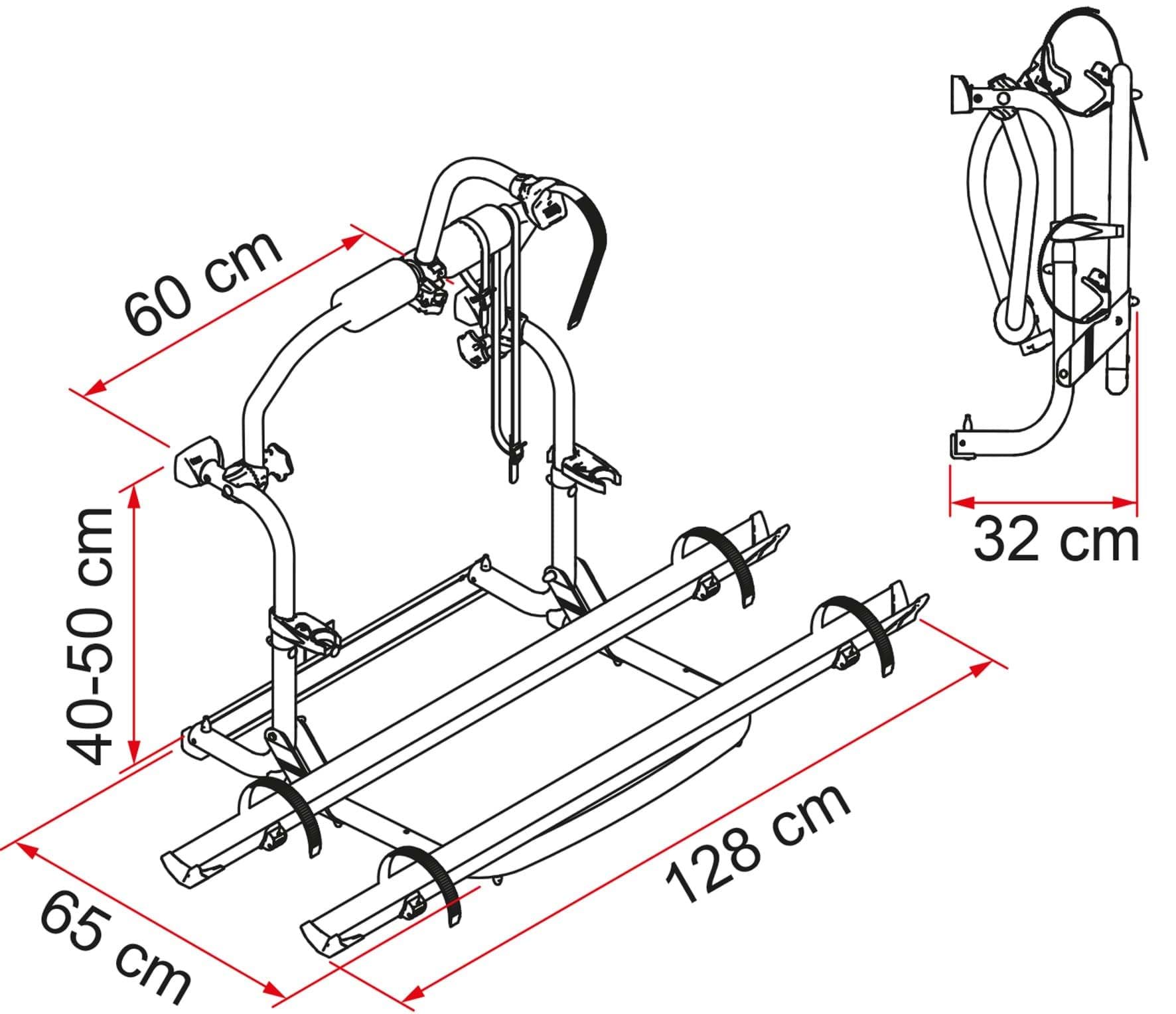 Kan gebruikt worden met de meeste voertuigen en kan gemonteerd worden onder het achterraam van de camper. Het stevige maar lichte wandframe van geanodiseerd aluminium is telescopisch regelbaar van 40 cm tot 50 cm.
