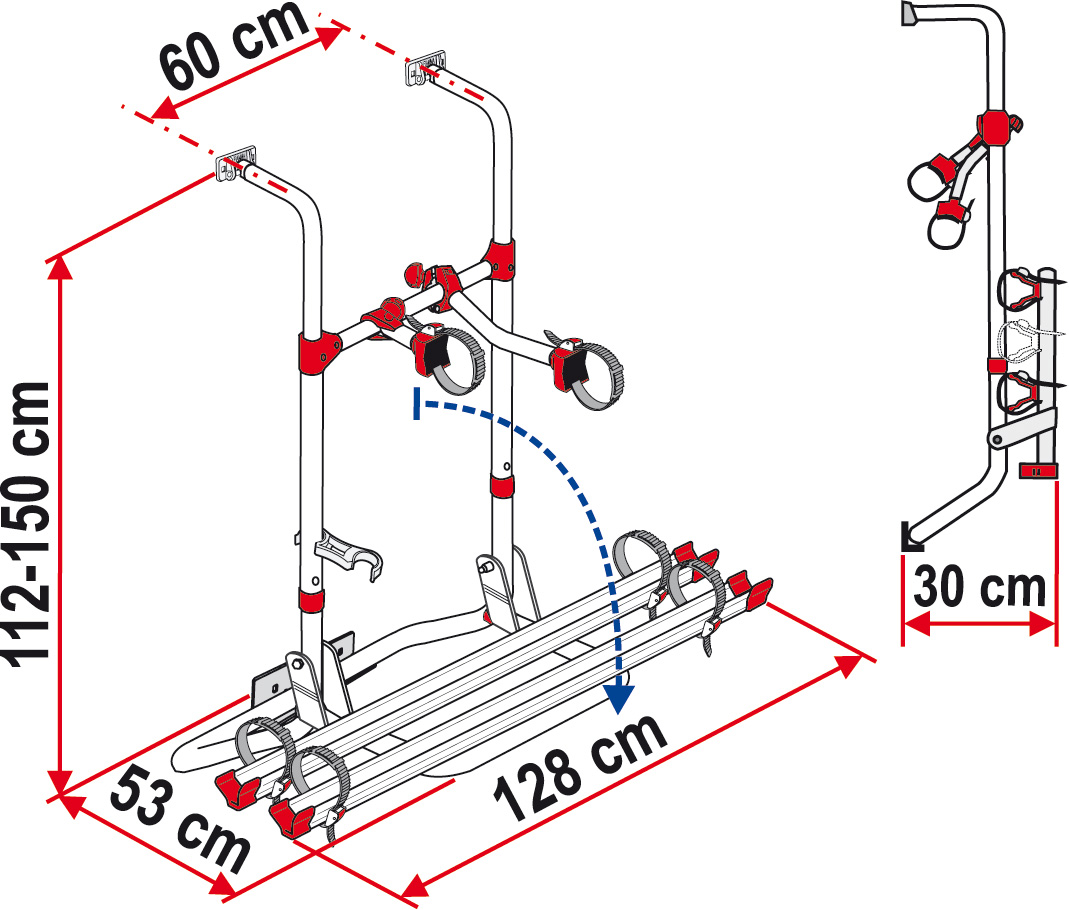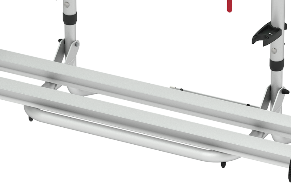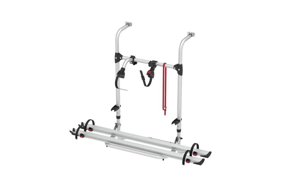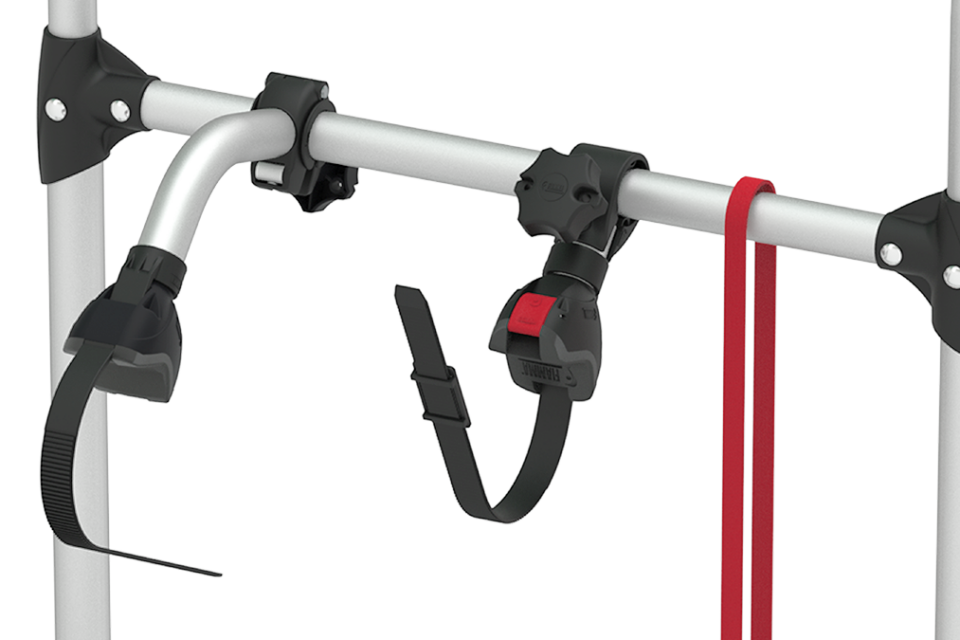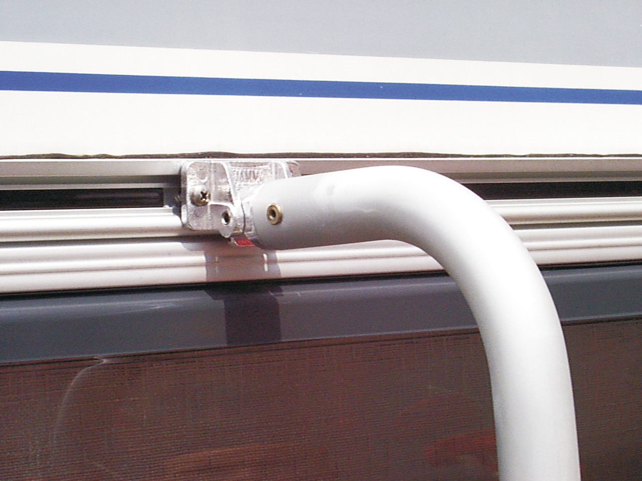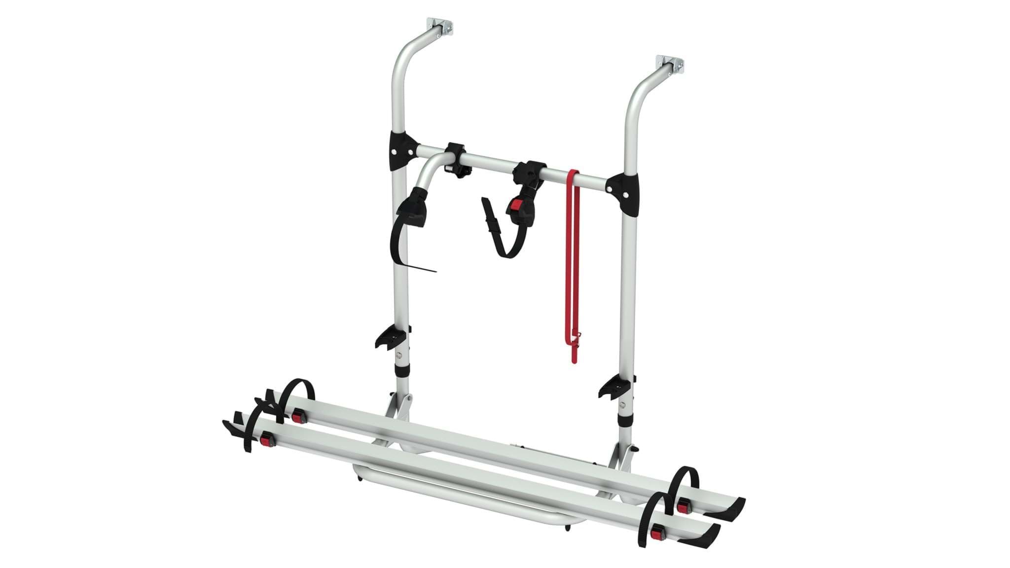 Speciaal ontworpen voor caravans met een zwakke achterwand. Wordt gemonteerd door gebruik te maken van de verstevigde punten die reeds aanwezig zijn in de wand. De bovenste haken worden bevestigd in de goot aan de achterzijde van de caravanwand. De onderbevestiging wordt aangebracht in de verstevigde punten aan de onderkant.
