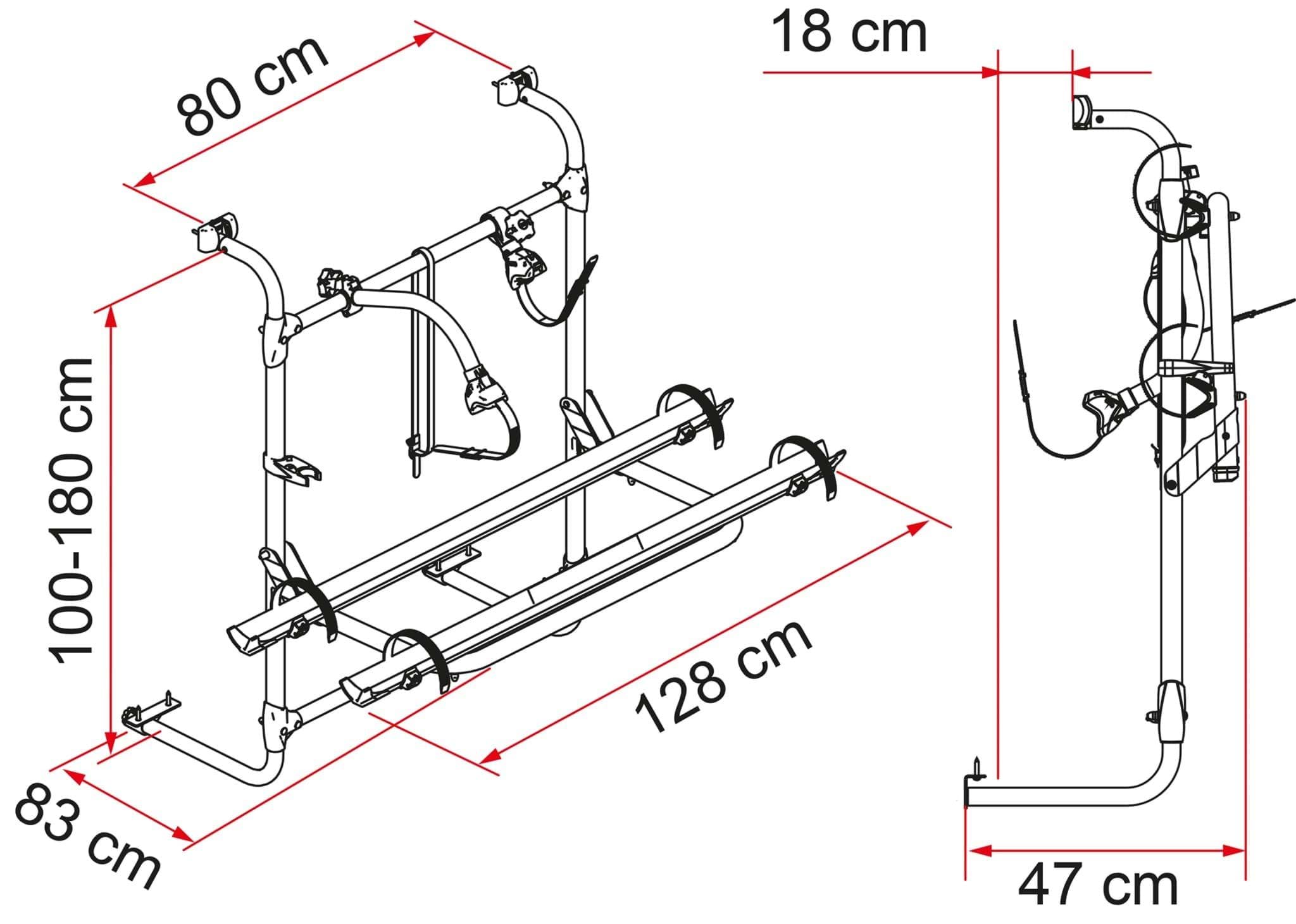 3D weergaven van de Fiamma Carry-Bike Caravan Universal fietsendrager. Deze weergave staat op de site van Fiamma. Klik op de knop hieronder om de 3D weergave te bekijken (opent in een nieuw scherm)