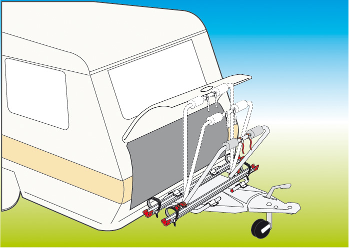 Fietsenrek geschikt voor de standaard caravandissel, voor de Hobby caravan met verlengde / brede dissel en voor het nieuwe AL-KO chassis.
