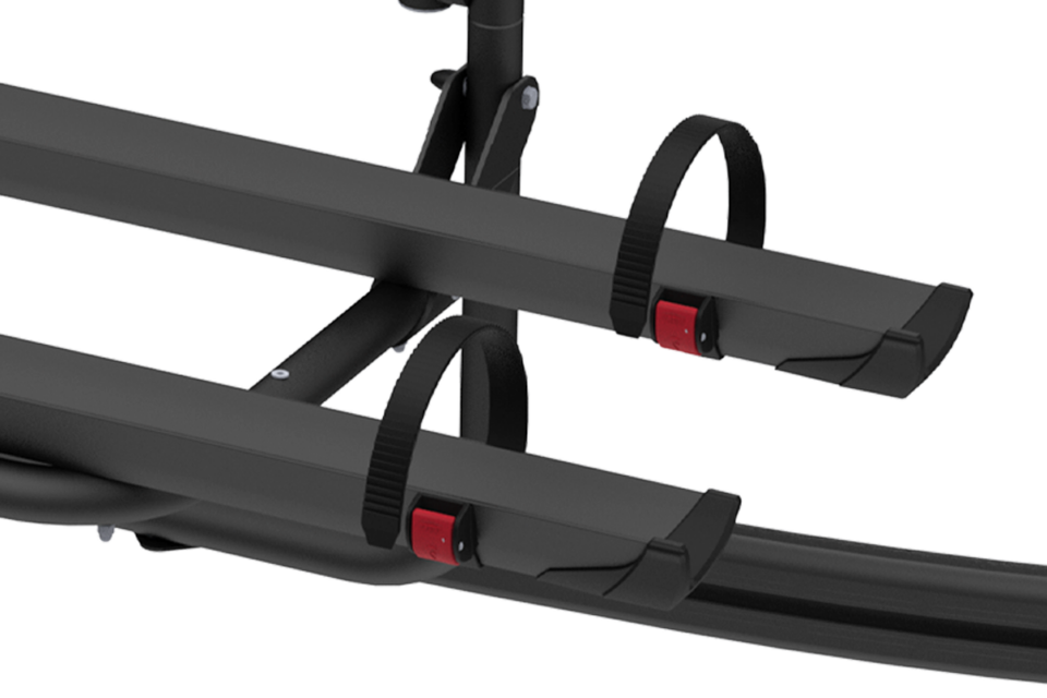 Deze drager is geschikt voor 2 E-bikes of 2 / 3 standaard fietsen (met extra rail)