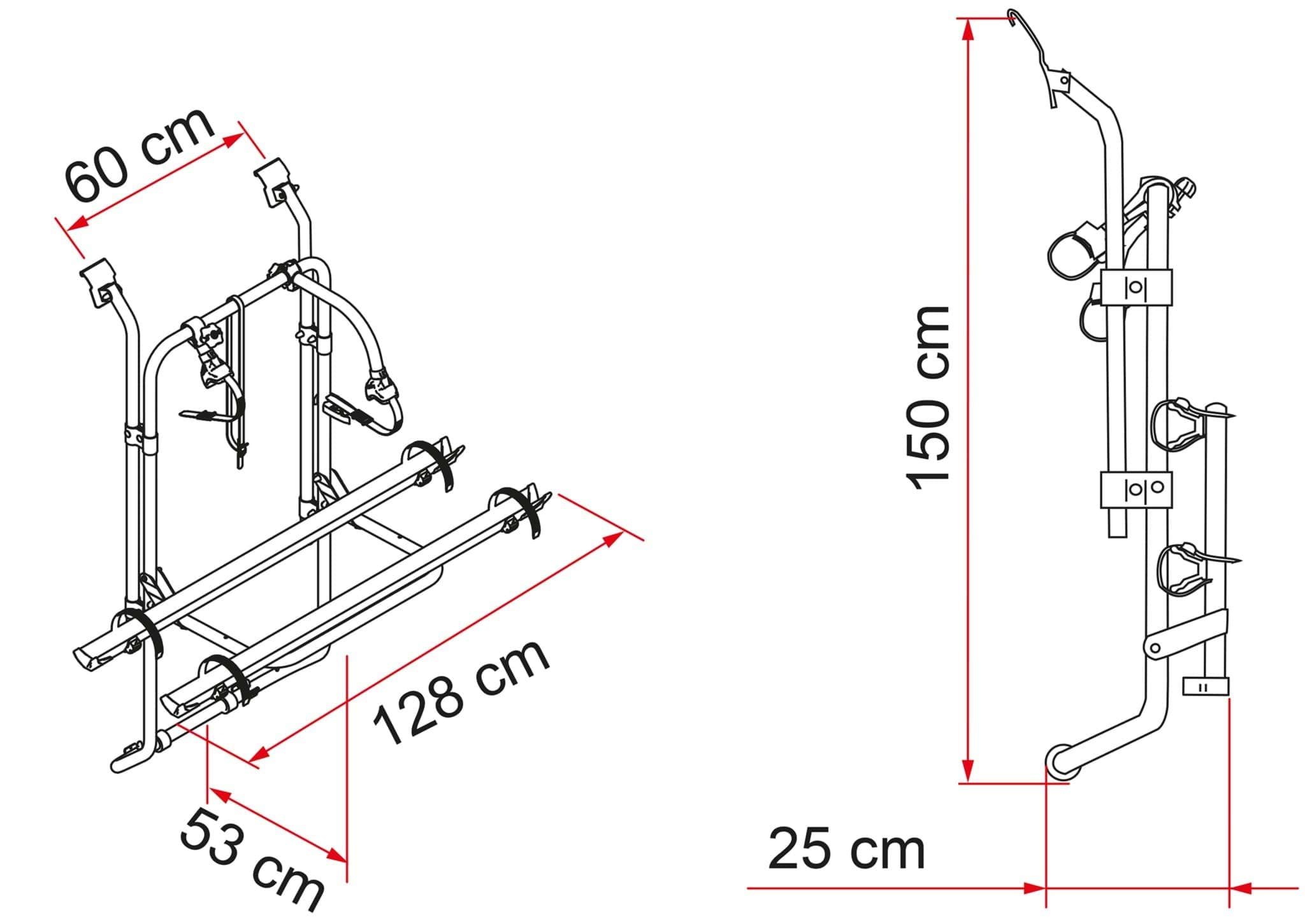 Fietsendrager van Fiamma, geschikt voor op de achterklep van de Ford Transit tussen bouwjaar 2000 en 2012.
