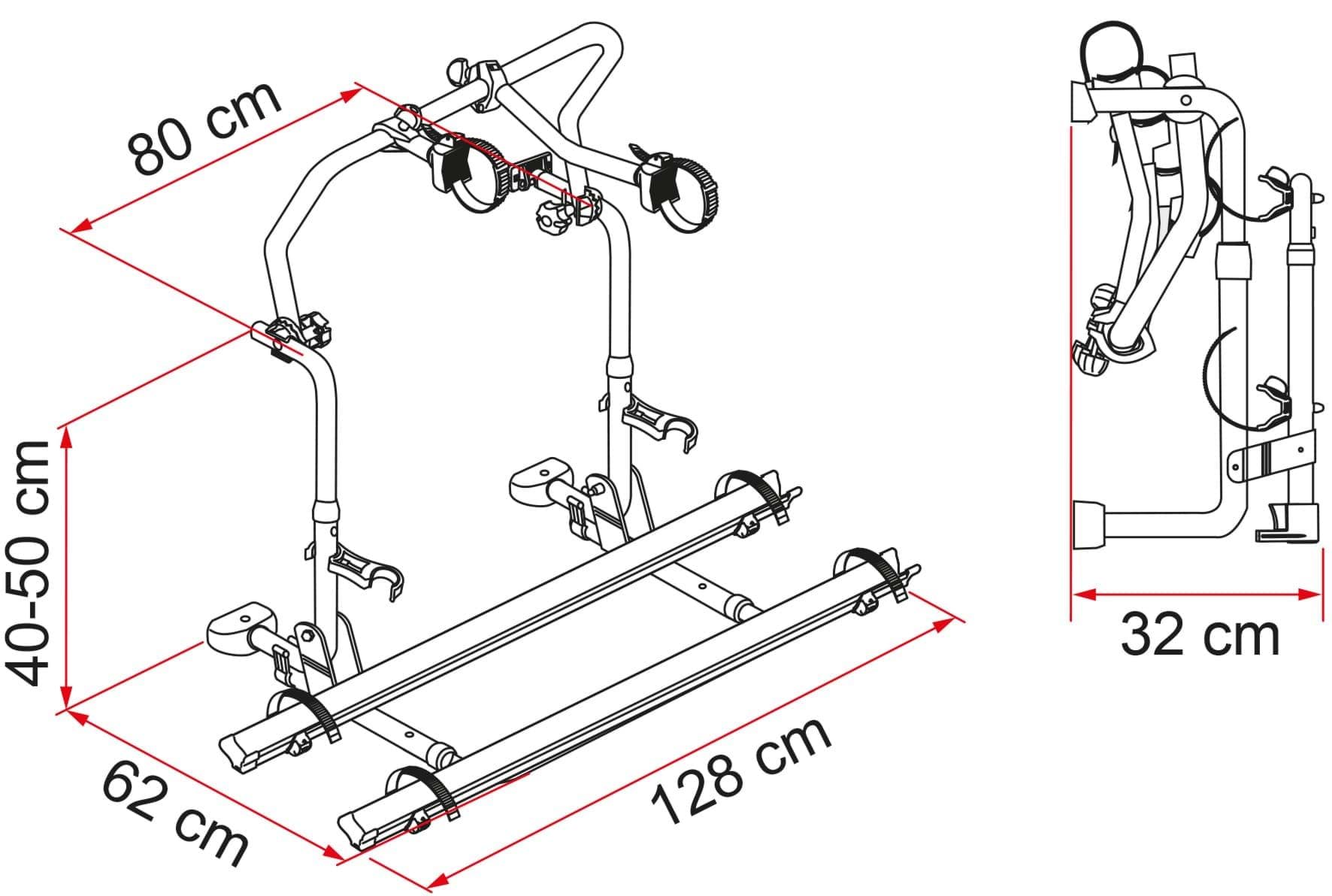 Pro C fietsendrager speciale uitvoering met as afstand van 80 cm, ontwikkeld voor de Laika campers.