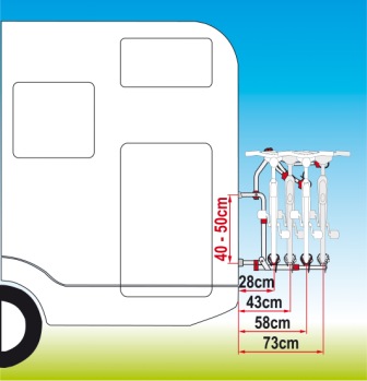 RVS draagframe. Geschikt voor montage aan de achterzijde van de camper. Dankzij het beperkte wandframe van slechts 40 tot 50 cm geschikt voor montage onder het raam.