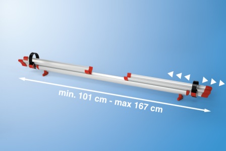 Telescopische wielgoot welke versteld kan worden in de gewenste lengte.