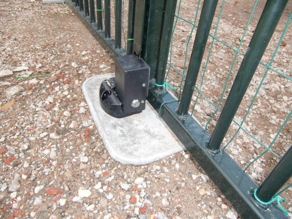 Het slot kan aan een stalen hek gelast worden of geschroefd aan een houten hek. Een slot is niet direkt noodzakelijk, want de motoren werken m.b.v. een spindel en de spindel is in feite het slot, maar voor extra zekerheid kunt u ook nog het slot monteren. Er valt een pal (onderzijde) in de stopper zodat het hek ook niet kan klapperen in de wind.