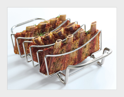 Dit rek is gemaakt van 10 mm dik roestvrij staal. Het Rib Rack is multifunctioneel en daardoor tevens geschikt voor grote stukken vlees als men het Rib Rack omdraait.