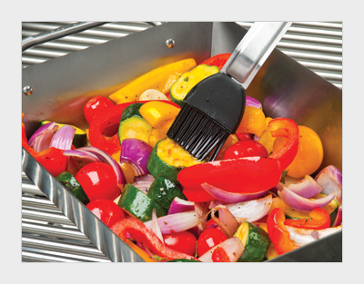 De bodem is voorzien van speciaal vormgegeven vierkante perforatie gaten die door hun vormgeving aanbakken helpt voorkomen.
